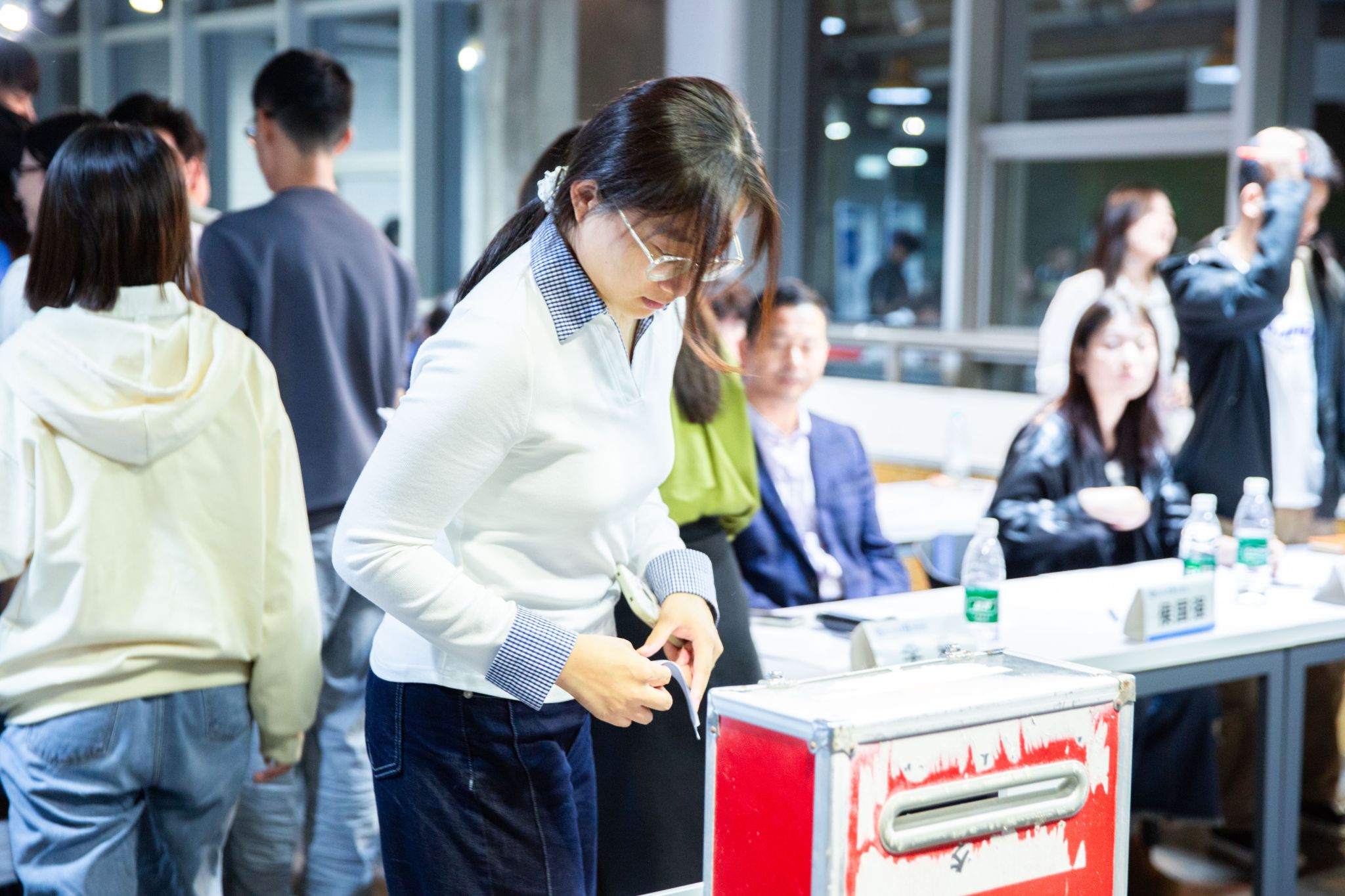 本次答辩创新实行“师生同票”评审机制,组建由7位教师代表与60名学生代表构成的双代表评审团,将学生意见置于与教师同等重要的位置,充分彰显民主评议的核心原则。教师代表由学院党委副书记侯国强及辅导员团队组成,为评审提供专业把控;学生代表则按年级合理分配——22级每班1名、23级及24级每班3名,且均满足“无违纪记录、女生不得少于1人、团员代表不少于2人”的标准,确保覆盖不同年级学生诉求。“师生拥有同等投票权,既靠教师专业经验把握方向,更让学生意见充分融入评审过程,让结果更贴合学生期待。”辅导员李菊在现场强调。