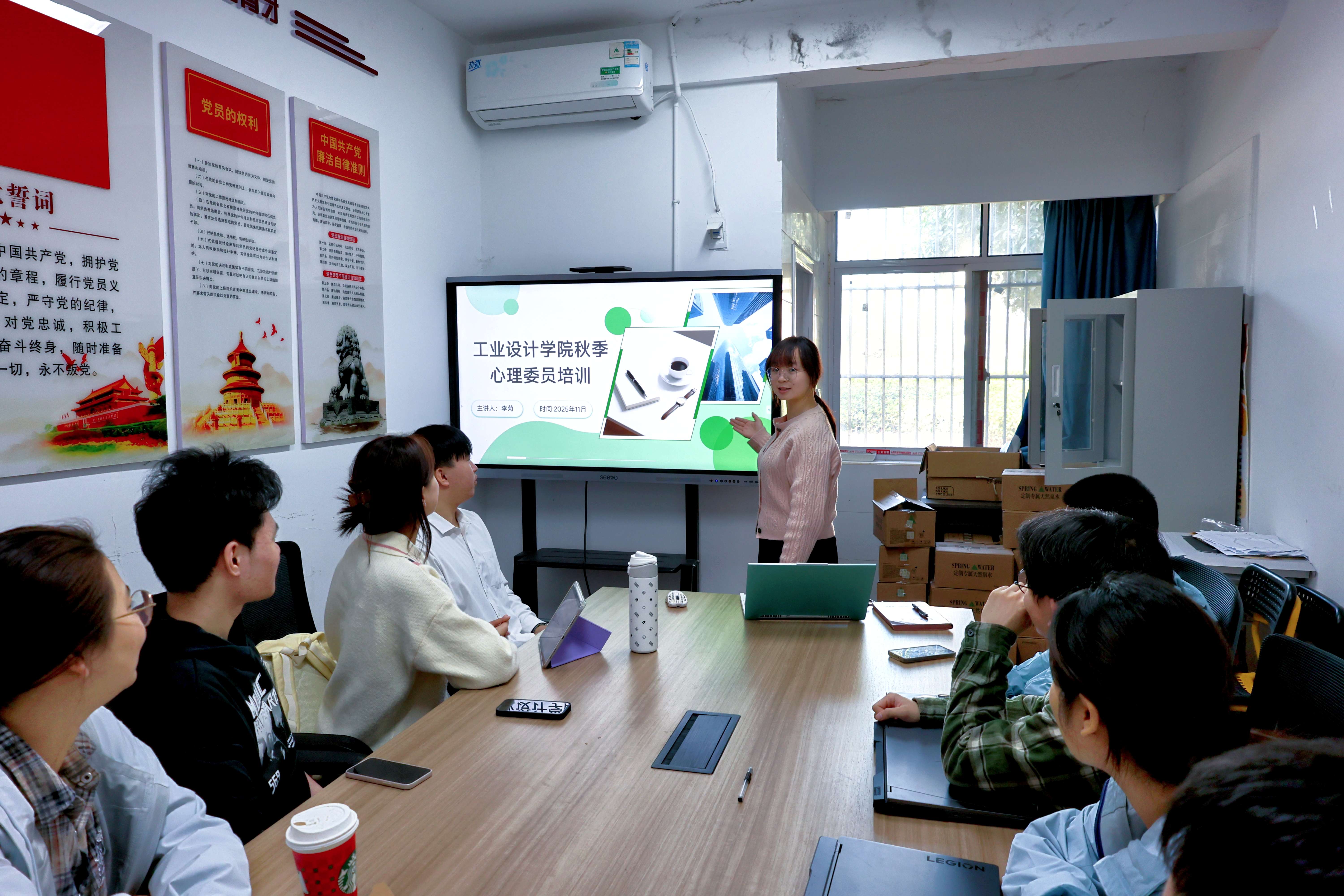 11 月 3 日,工业设计学院在 C6-142 党员之家举办心理委员培训,由李菊老师主讲,全院 12 名心理委员参与,围绕五项核心实用内容展开教学,提升基层心理健康服务能力。
