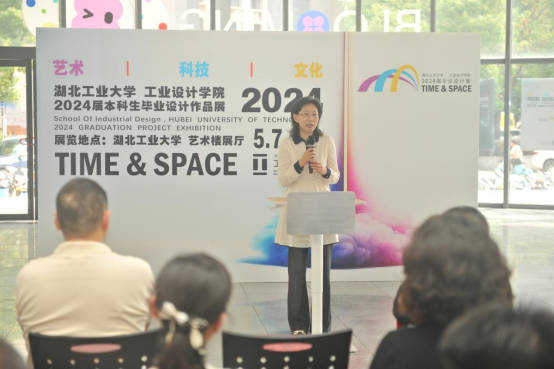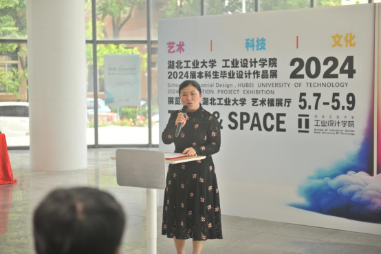 胡晓艳代表学校向出席开幕式的领导来宾表示欢迎,向工业设计学院2024届毕业生表示祝贺。她表示,学校认真贯彻落实习近平总书记对美育工作的重要讲话精神,以美育人、以文化人,本次展览作品充分展示了艺术、文化与科技的融合魅力,表达了师生对美好生活的思考和设计的创新思维,呈现了学院学科交叉与文化创新的特色成果。她希望工业设计学院进一步加强政校企合作,以设计创新助推新质生产力建设,在湖北教育强省和新型工业化进程中体现“湖工大设计”新担当。