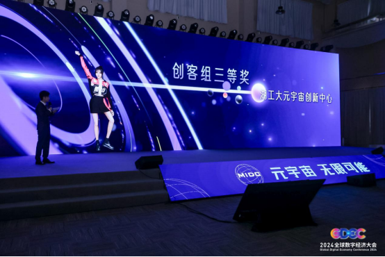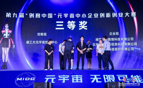7月4日,在北京举行的2024全球数字经济大会元宇宙创新发展论坛上,2024年“创客中国”元宇宙中小企业创新创业大赛颁奖活动圆满落幕。我院韩旭副教授带领湖工大元宇宙创新中心团队(团队成员:韩旭、邓卫斌、汪悦婷、谭保华、李明、高智勇、李晓英)的《元宇宙多模态数字文旅》项目荣获三等奖,这一荣誉是对我院教师团队在元宇宙领域的创新实践和应用潜力的高度认可。