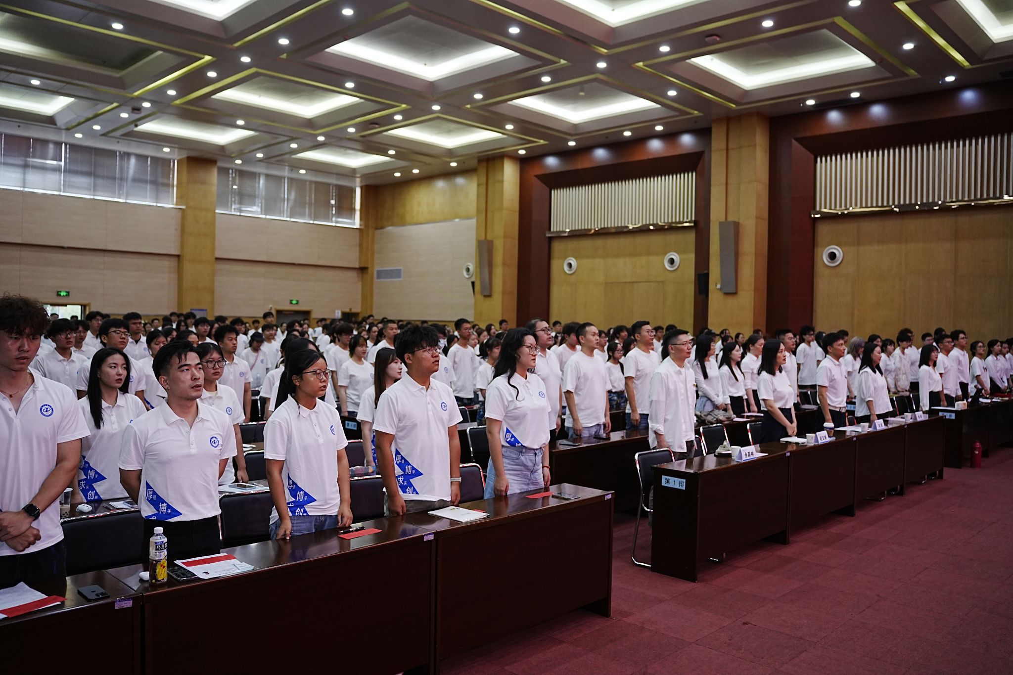 下午3时,开学典礼在庄严雄壮的国歌声中拉开序幕,全体师生肃立,齐唱国歌。