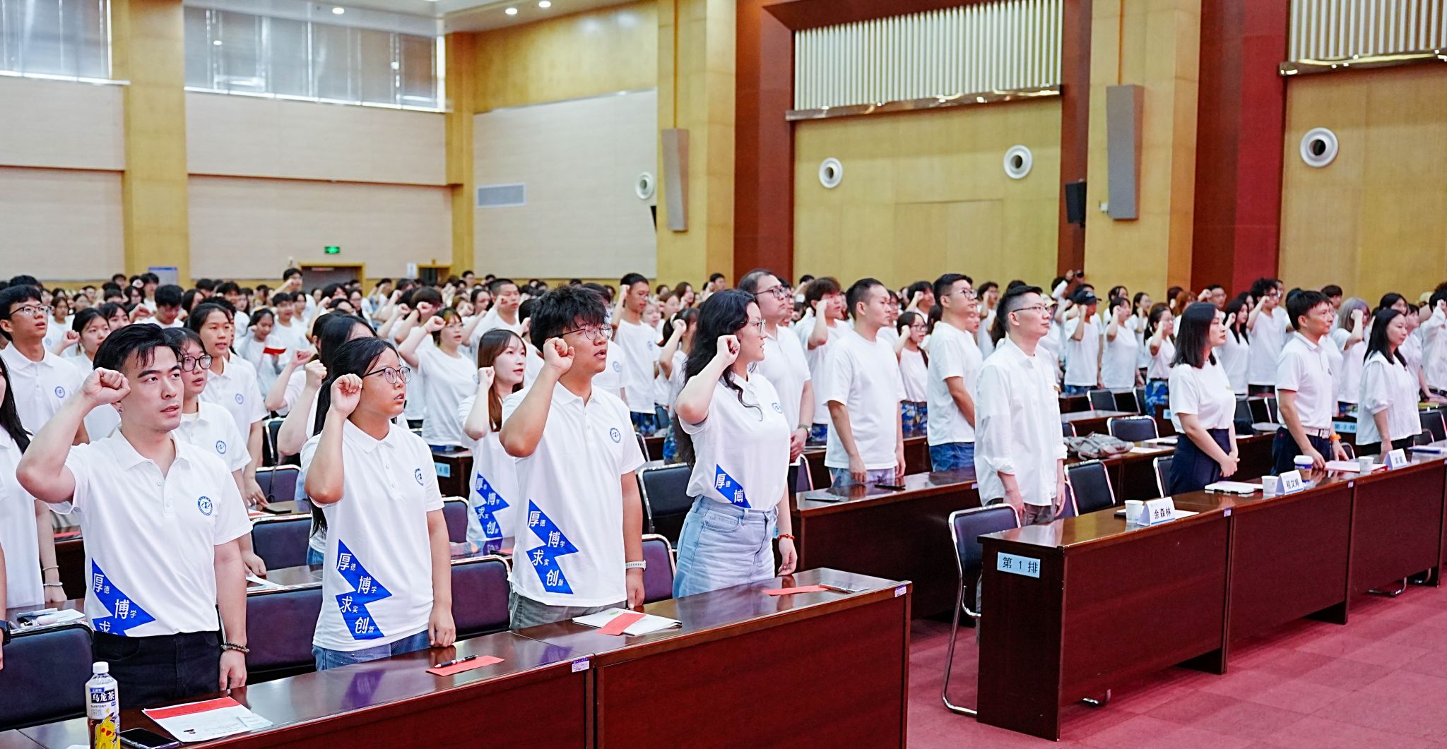 开学典礼上还举行了庄严的新生入学宣誓仪式,学院第十届学生会主席、2022级产品设计专业刘烨禹同学领誓,350名新生发出了践行校训精神,志存高远、坚定信念,勤奋学习、追求卓越,德才兼修、全面发展,尊师爱校、文明守纪,坚定不移听党话、跟党走,争做有理想、敢担当、能吃苦、肯奋斗的新时代好青年,为国家富强、民族复兴而努力奋斗的铮铮誓言!