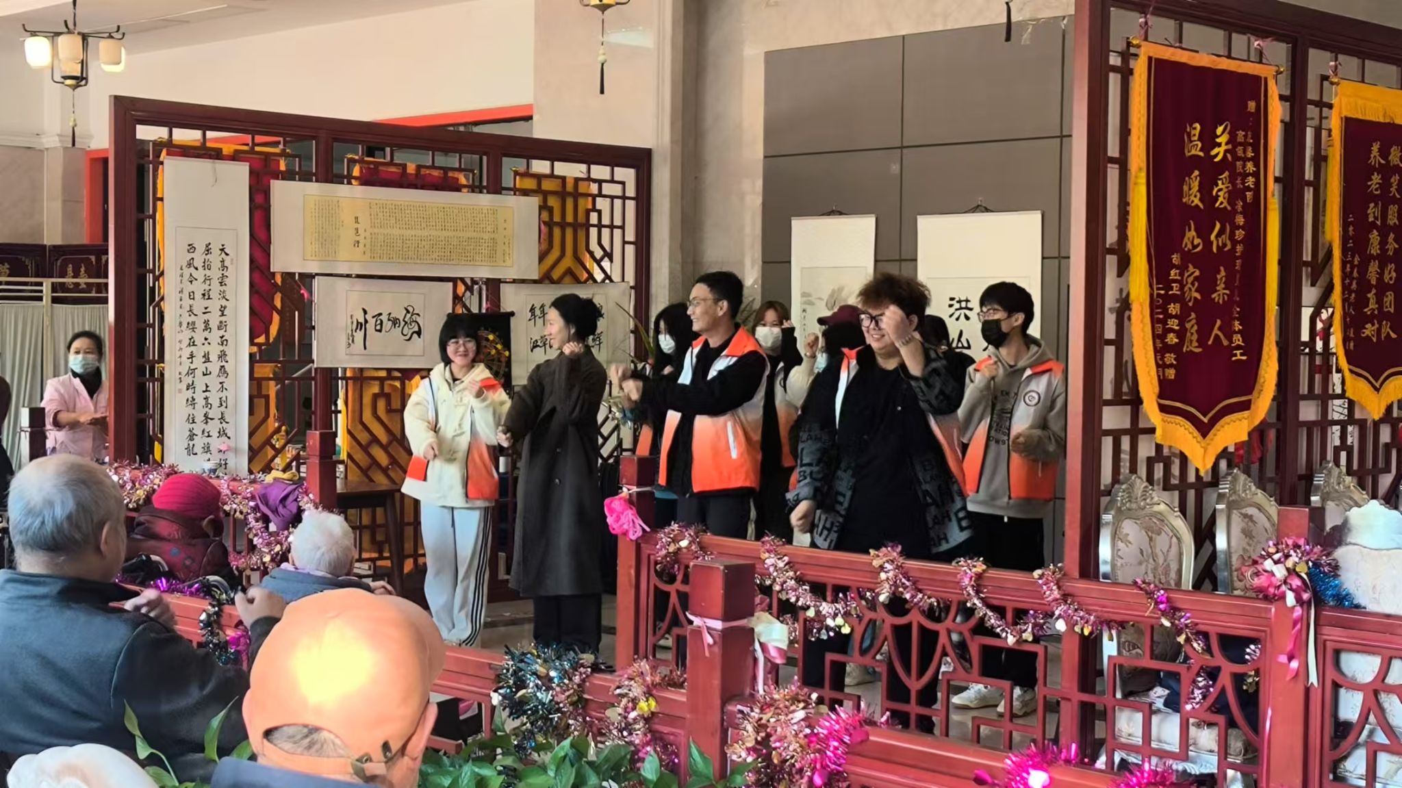 活动当天,志愿者们以欢快的歌舞开场。老人们欣赏着充满活力的歌舞表演,被这份热情所感染,欢声笑语、精神矍铄,眼神中透露出对欢歌乐舞的深深享受。