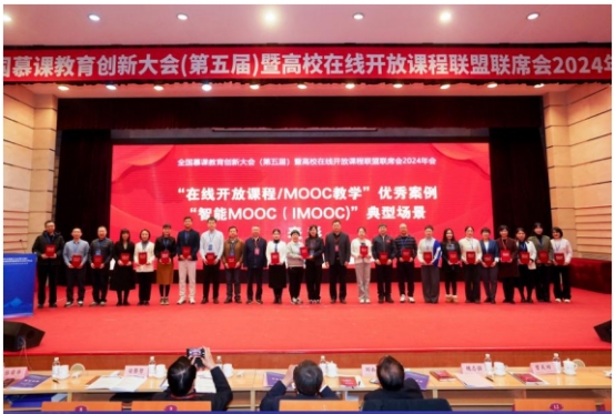 12月22日,全国慕课教育创新大会(第五届)暨高校在线开放课程联盟联席会2024年会在青岛大学成功举办。大会以“人工智能赋能在线开放课程的新场景”为主题,会上,公布了“在线开放课程/ MOOC教学”优秀案例以及MOOC(IMOOC)”典型场景,展示在线开放课程数字教学资源与教学改革优秀案例、先进做法,发挥出表率、示范与引领作用。