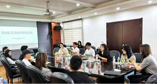 调研结束后,艺术设计学院院长饶鉴教授、视觉传达系主任黄亮副教授、工业设计学院“文化创意与产品设计”一级学术团队PI负责人李敏教授、智能玩具设计系邓然老师、智能交互设计系杨雅迪老师、智能家居设计系关甜老师、荆州博物馆副馆长彭昊、陈列馆主任王丹、荆州博物馆荆博弘楚文化传播有限公司总经理李梅、湖北省新华书店集团倍悦文创公司运营总监赵慧蕊等人共同出席了座谈会。