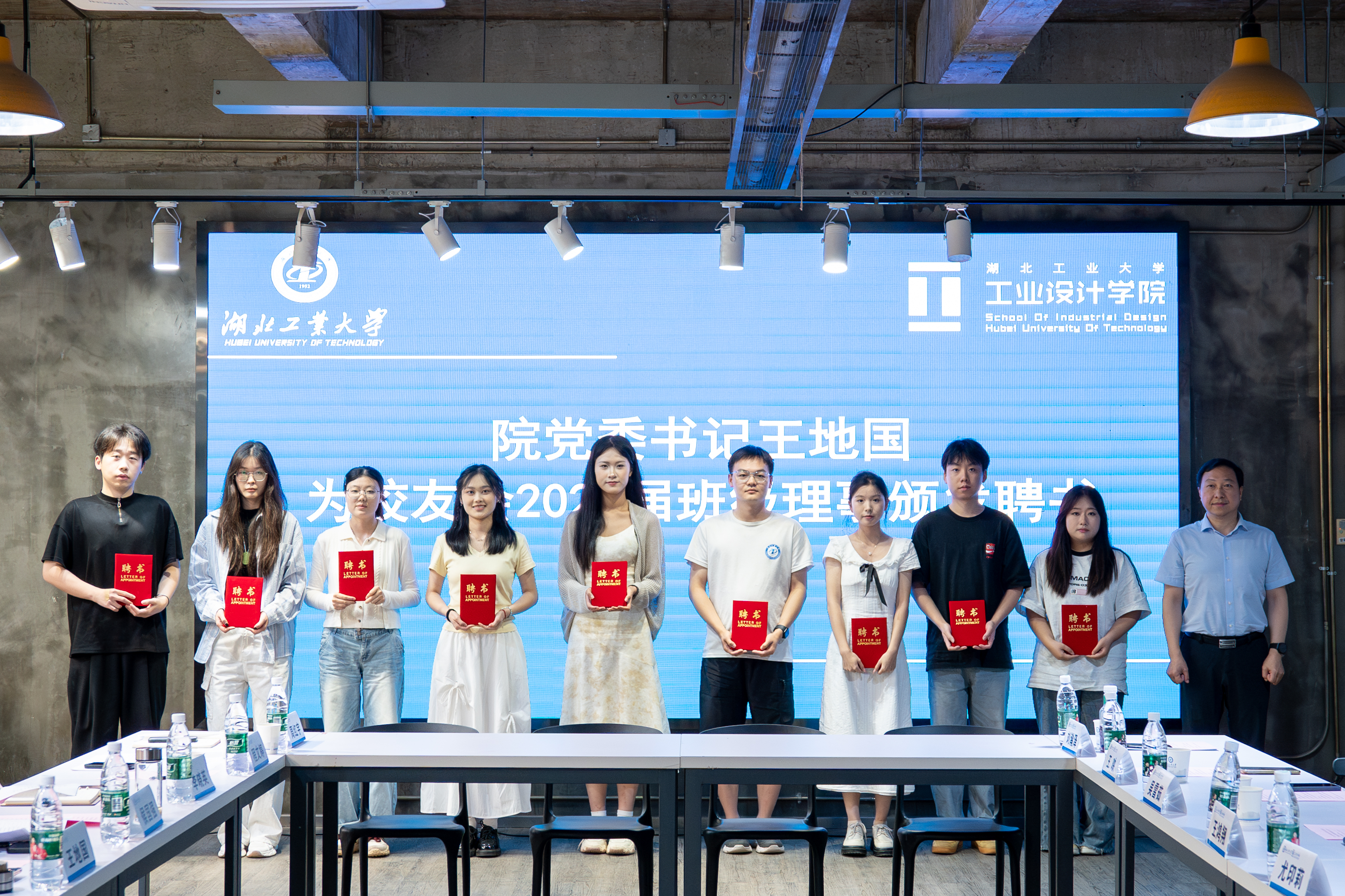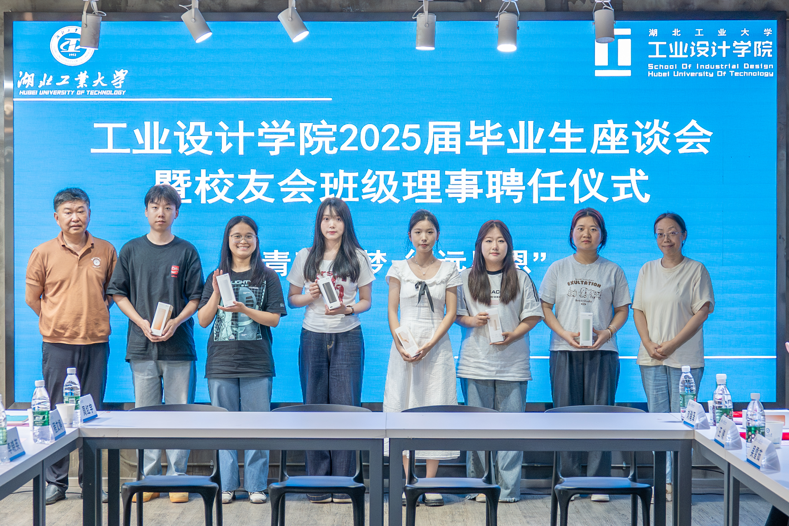 座谈会后,举行了校友理事聘任仪式。院长邓卫斌宣读了《关于聘任工业设计学院校友会2025届班级理事的通知》。学院党委书记王地国为获聘的各位班级理事颁发了聘书。班级理事作为维系校友与学院、校友之间沟通的重要桥梁,肩负着联络情感、促进交流的责任。
