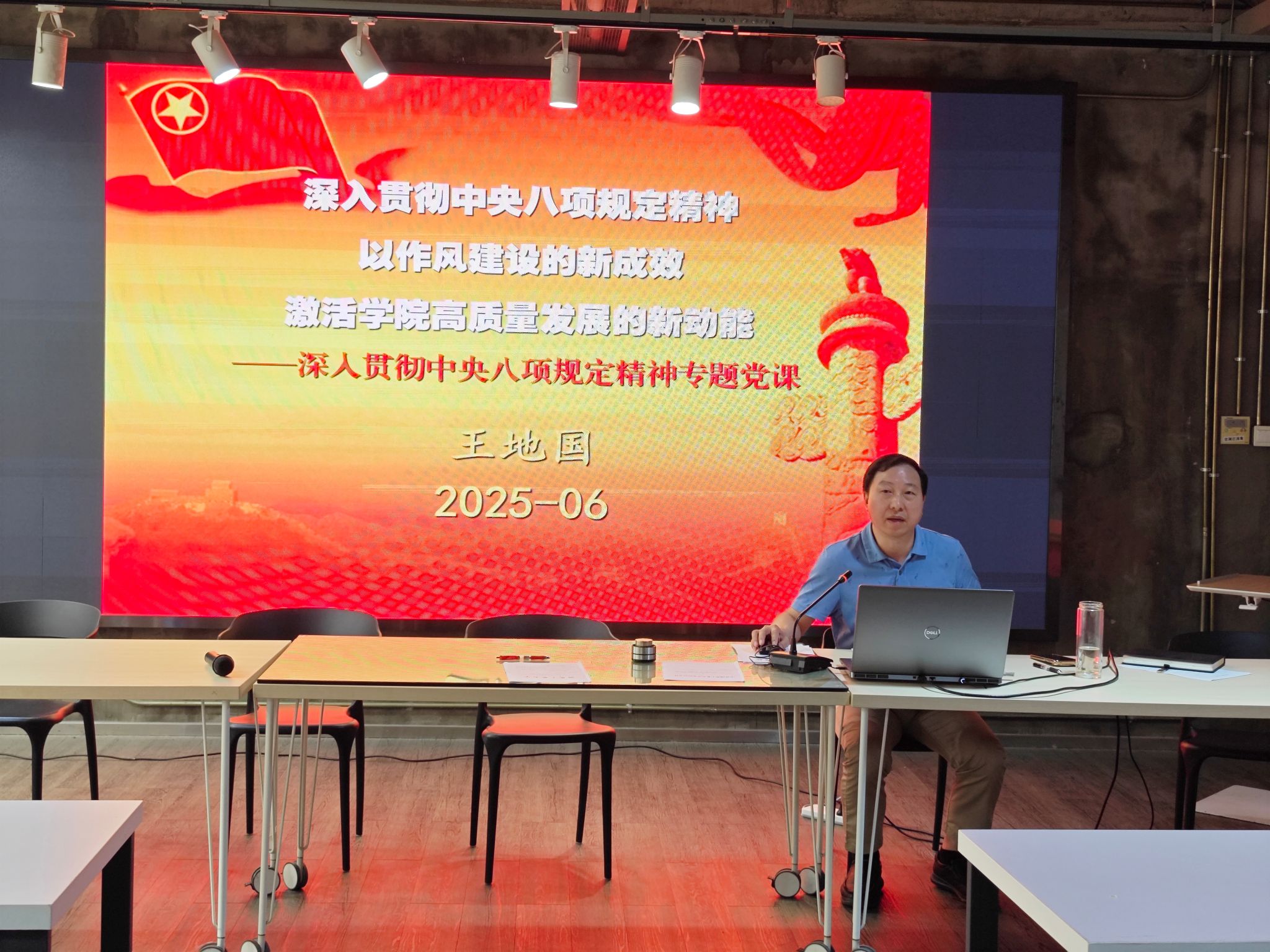 王地国强调,深入贯彻中央八项规定精神学习教育,既是学院当前最重要的政治任务,也是学院深化作风建设,进一步营造风清气正的政治生态和育人环境,加快推进学院“两提一 进”高质量发展的迫切需要。