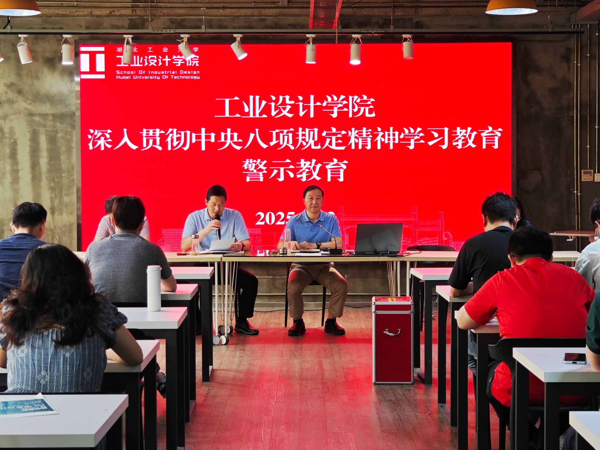 6月12日,为扎实推进深入贯彻中央八项规定精神学习教育,工业设计学院召开全院教职工大会,党委书记王地国以“深入贯彻中央八项规定精神 以作风建设新成效激活学院高质量发展新动能”为题讲授专题党课。