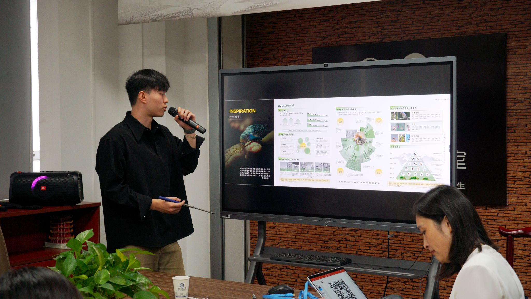 随后,2024级研究生毛宇轩、2023级研究生邓淇匀分别分享了可持续包装与国潮IP设计,展示青年视角下设计"隐形价值"的具体转译过程,体现出新一代设计人对功能与审美融合的深入思考。互动环节,跨学科同学就“你喜欢什么样的设计”展开讨论,现场交流气氛热烈。