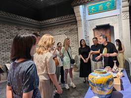 座谈会结束后,俄方代表团在中方陪同下参观了工业设计学院与艺术设计学院的教学环境、实验室与学生作品展厅,详细了解我院的教学设施与课程设置。随后,双方一同前往我校明清家具博物馆,刘显波教授做了精彩的藏品讲解。该馆收藏了大量明清时期的古典家具,具有极高的艺术与历史价值。俄方专家对馆内展品表现出浓厚兴趣,高度赞赏我校在传统文化保护与艺术教育融合方面所做的努力。